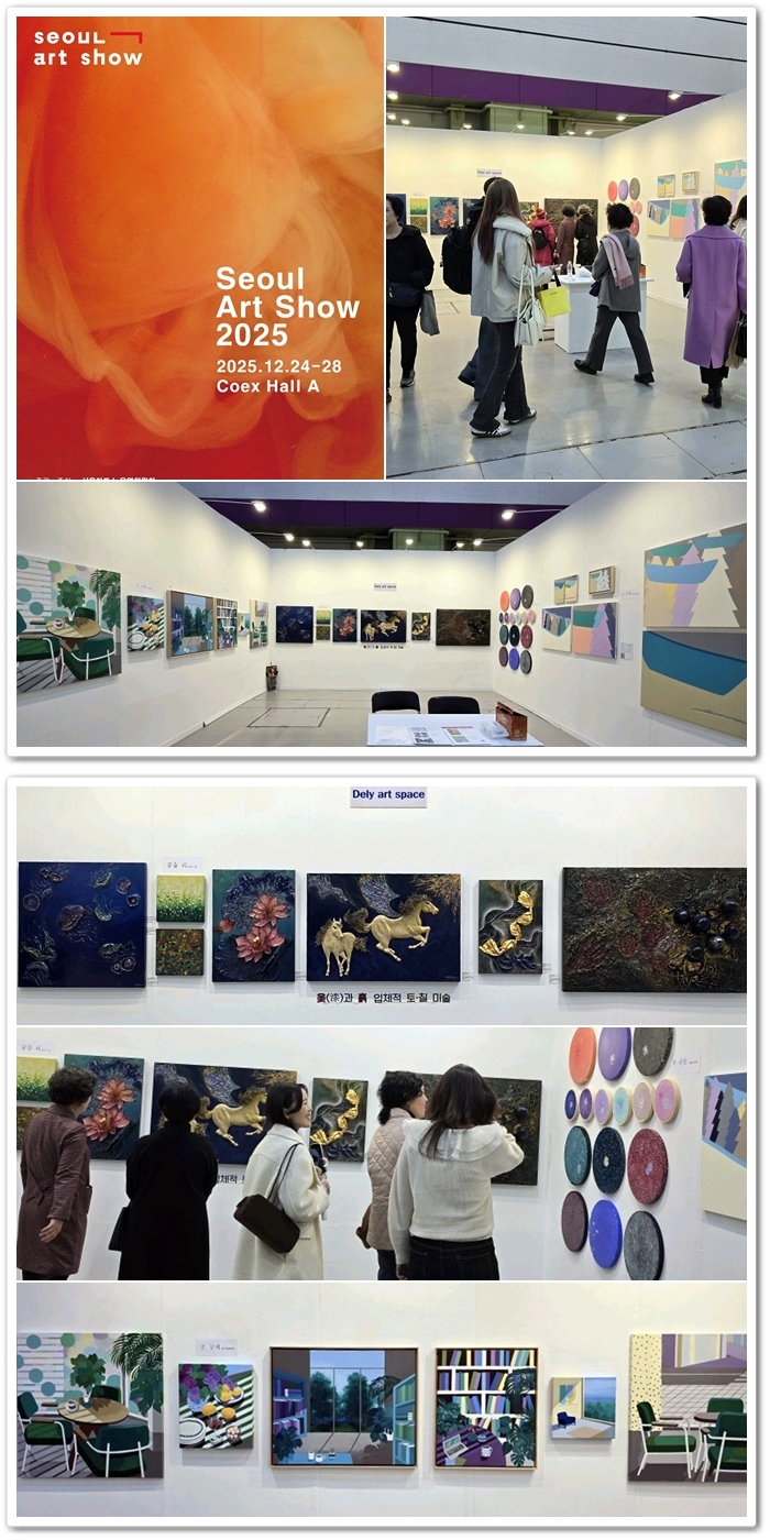 | 당사 문화사업부 델리아트스페이스는 2025년 12월 24일부터 28일까지 서울 강남구 코엑스에서 열린 「서울아트쇼 2025」에 참여하여 동시대 미술의 다양한 흐름과 예술적 가치를 관람객들과 공유하는 뜻깊은 시간을 가졌습니다. 이번 전시를 통해 델리아트스페이스는 예술과 일상, 그리고 문화 콘텐츠를 연결하는 플랫폼으로서의 비전을 제시하며 문화예술의 저변 확대와 창작 생태계 활성화에 기여했습니다. |